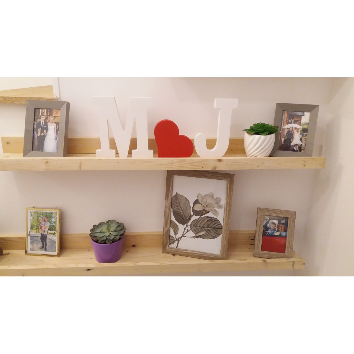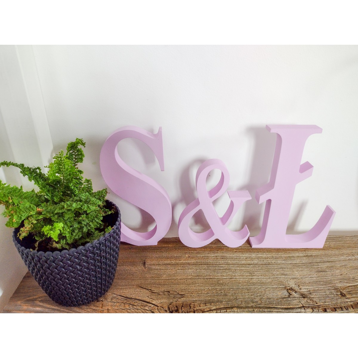 Litery są ręcznie malowane ekologiczną białą lub na życzenie kolorową farbą. Przeznaczone do dekoracji wnętrz, w postaci różnorodnych napisów bądź inicjałów ślubnych i narzeczeńskich.