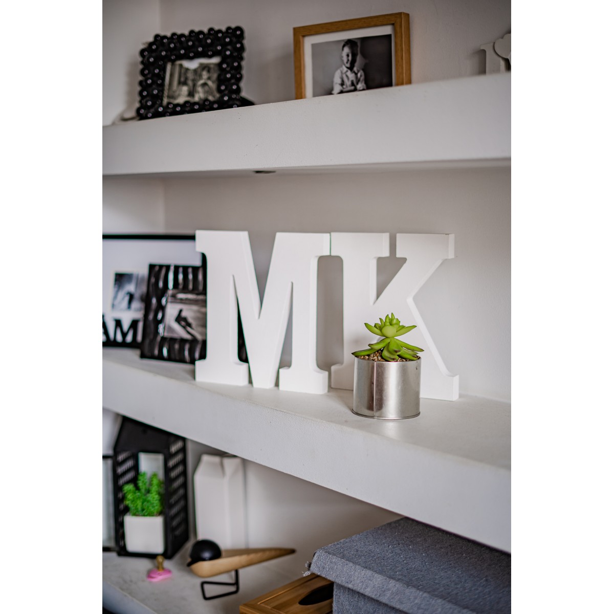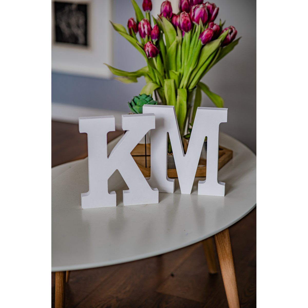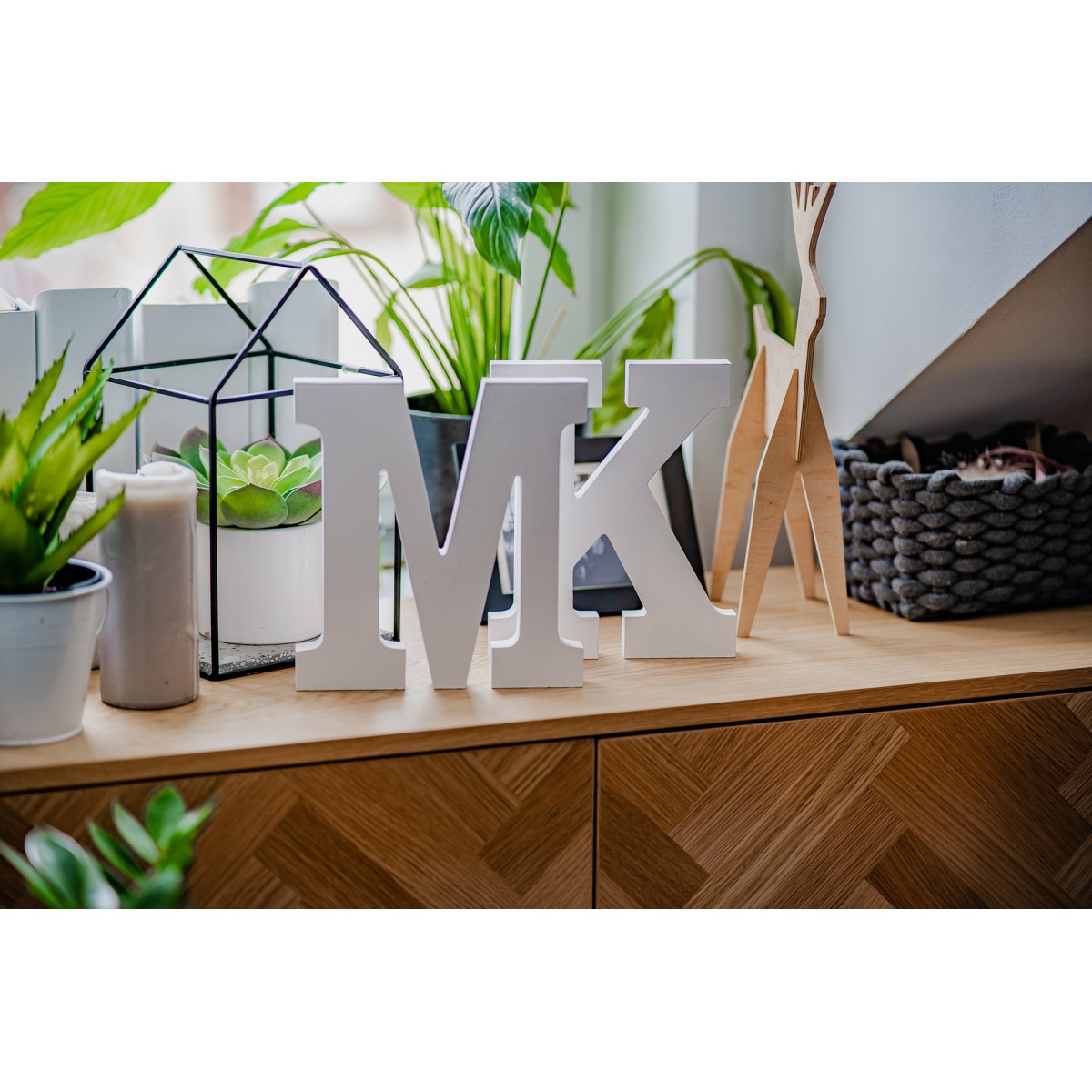 Litery wykonane są z płyty drewnianej MDF o grubości 23 mm, co zapewnia im stabilność w pozycji stojącej.