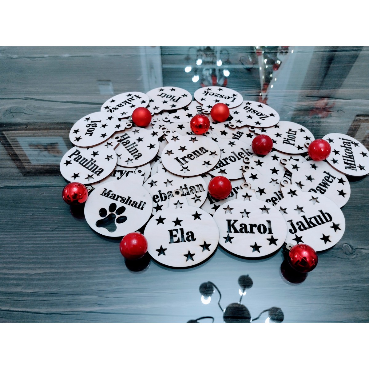 Bombki wykonane są z najwyższej jakości sklejki brzozowej, a dzięki precyzyjnemu grawerowi laserowemu każda z nich może stać się osobistym, pełnym emocji prezentem. Na każdej bombce wygrawerujemy dowolne imię – to doskonały sposób, by uczynić Święta jeszcze bardziej osobistymi i pełnymi wspomnień.