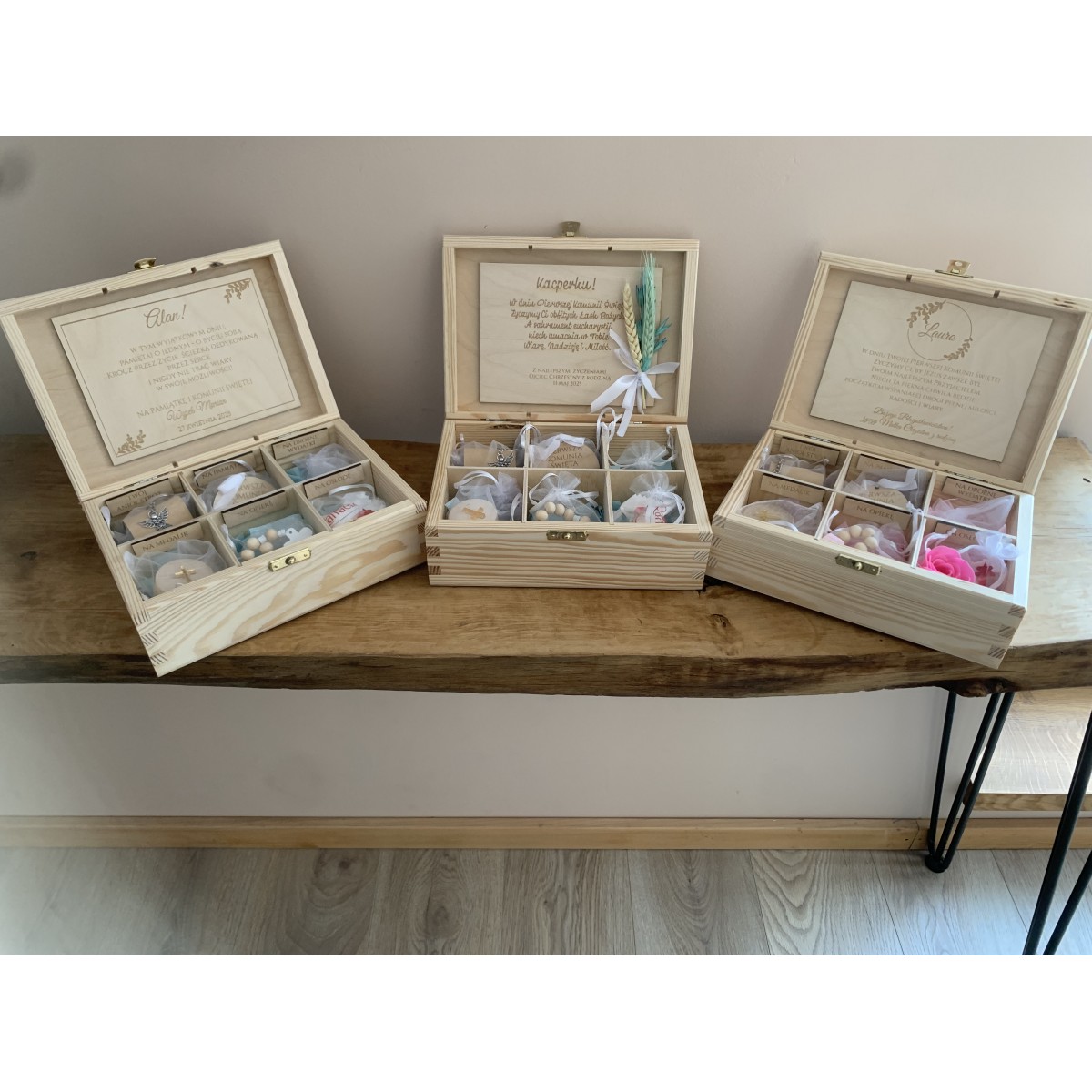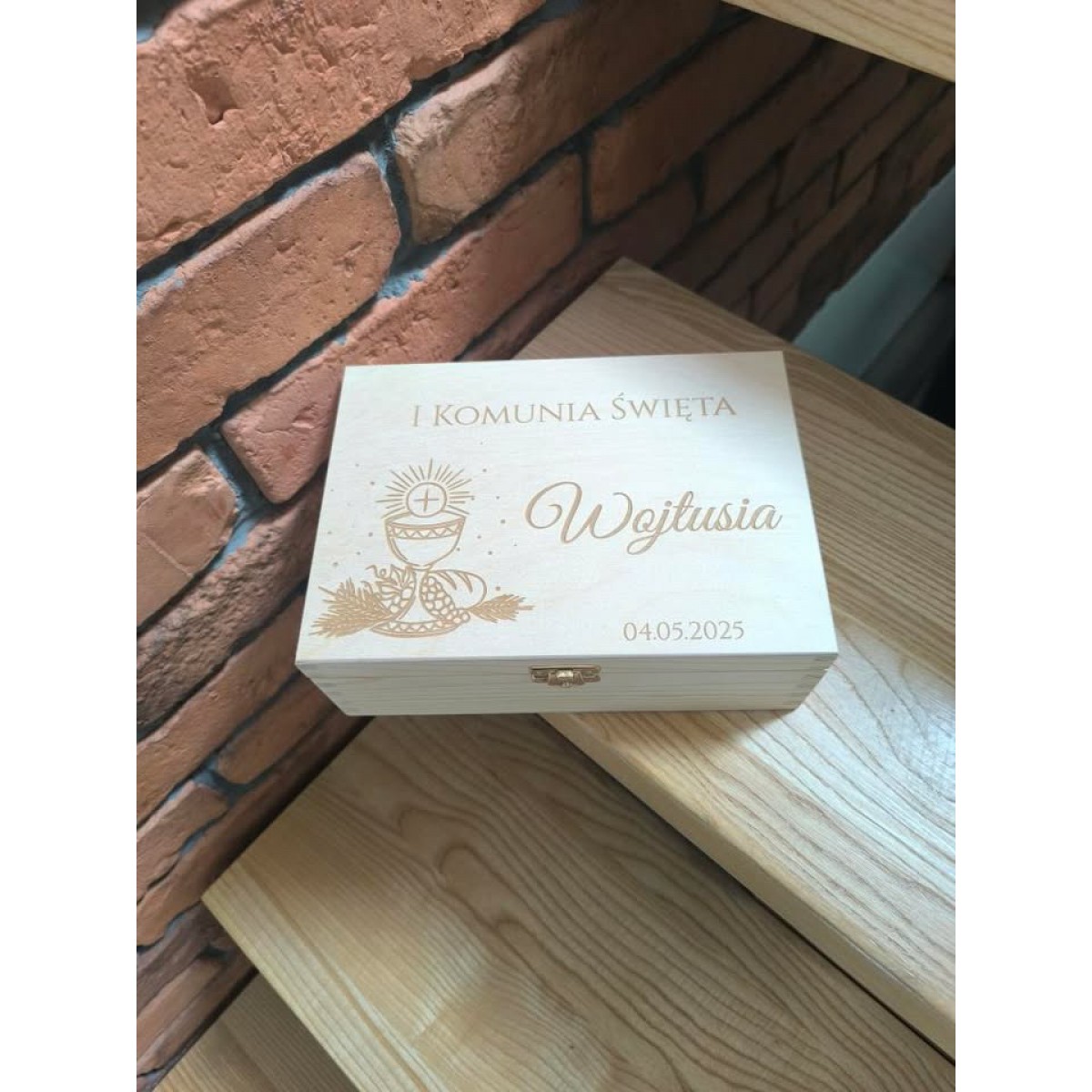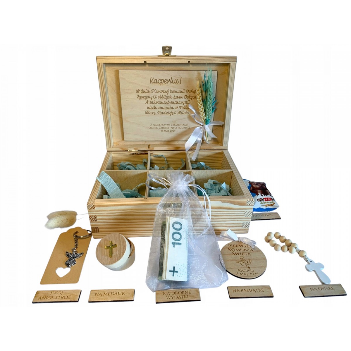 Pamiątka Pierwszej Komunii, personalizowane pudełko z przedmiotami
