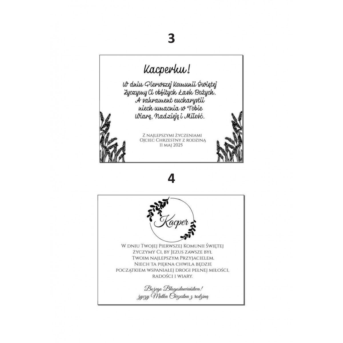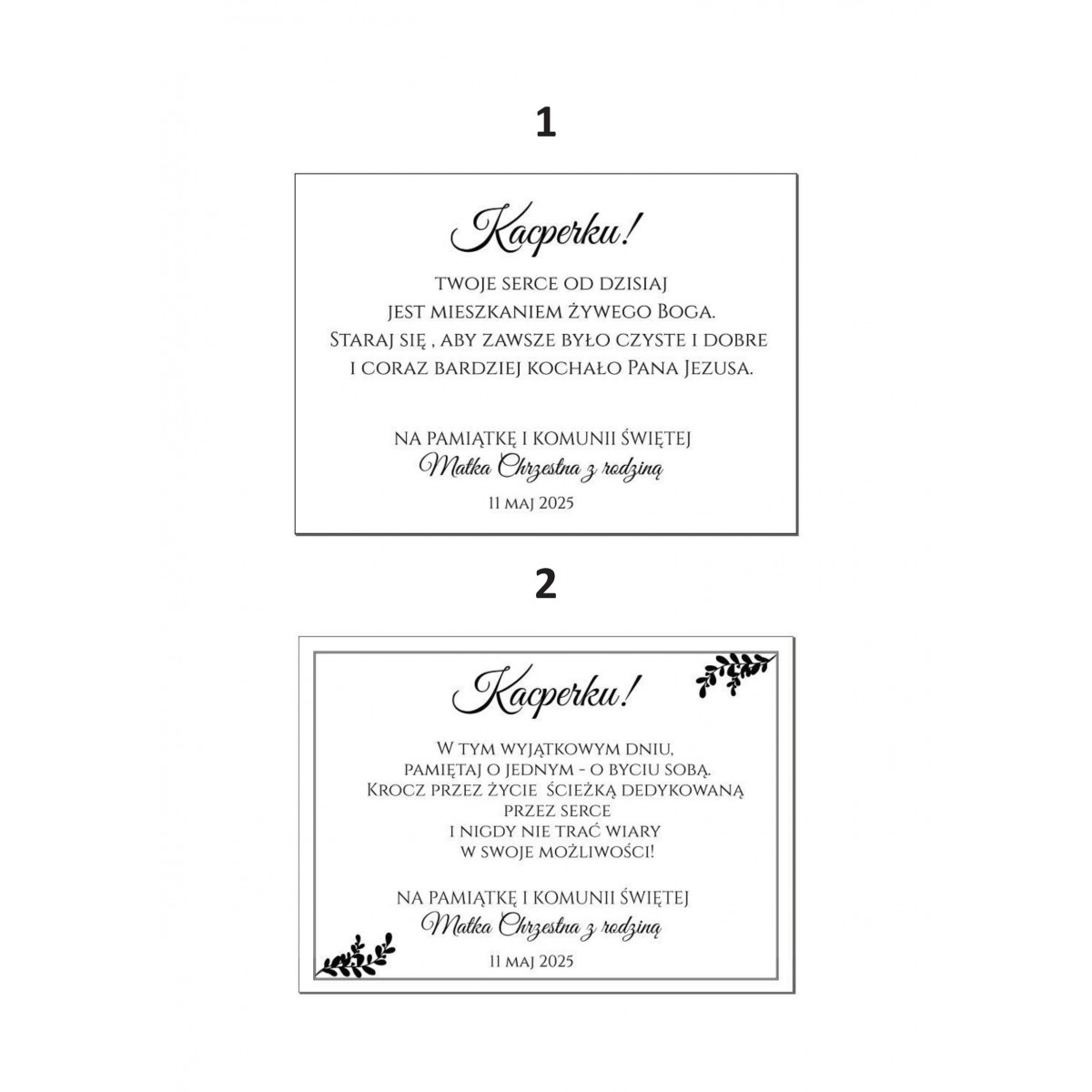 • napis na froncie I KOMUNIA ŚWIĘTA + IMIĘ ORAZ DATA